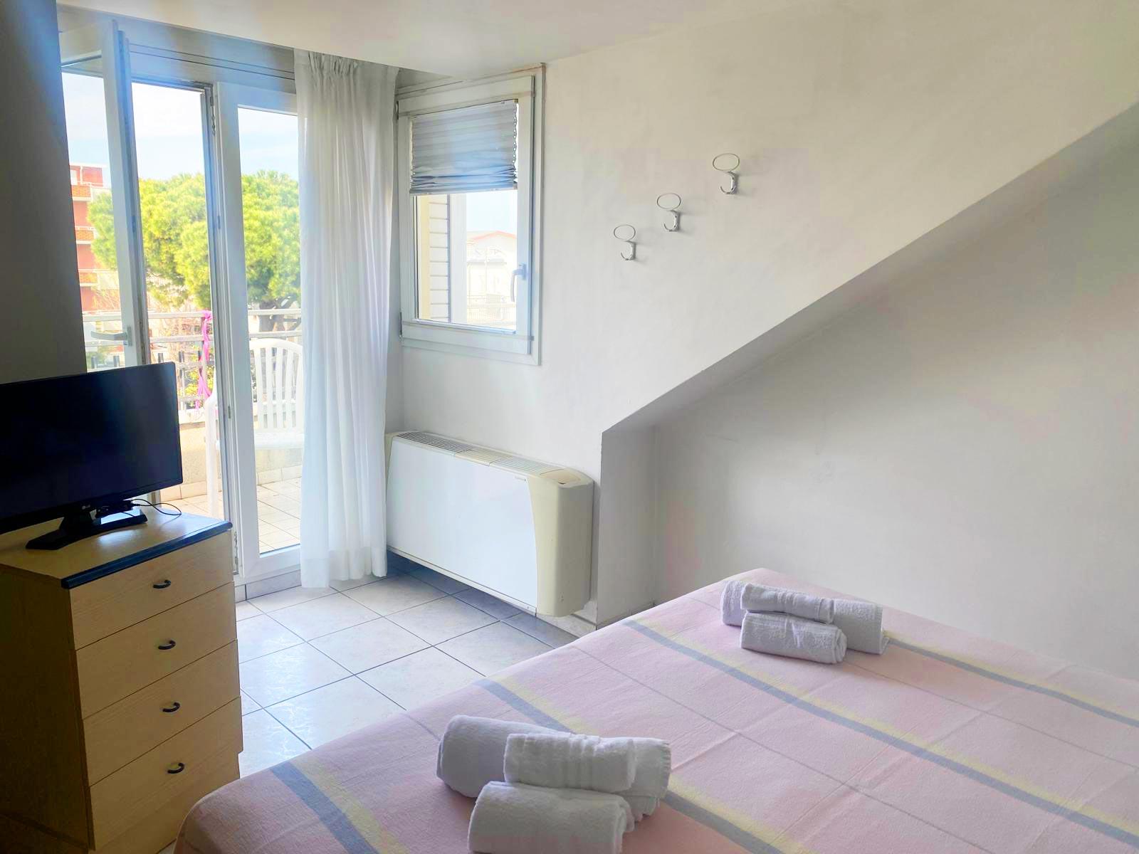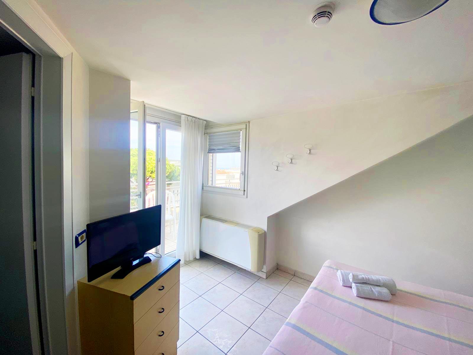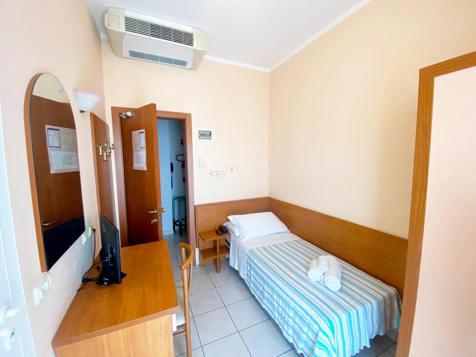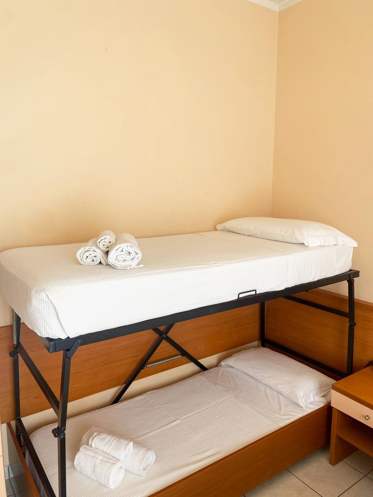 Perfect for families or larger groups, the quadruple room offers four comfortable beds and plenty of space to move around freely. Equipped with a private bathroom, Wi-Fi, air conditioning, and a TV, it ensures comfort and convenience throughout your holiday. Its proximity to the sea and Riccione's main amenities makes it the ideal solution for enjoying the best of the Adriatic Riviera without sacrificing convenience.